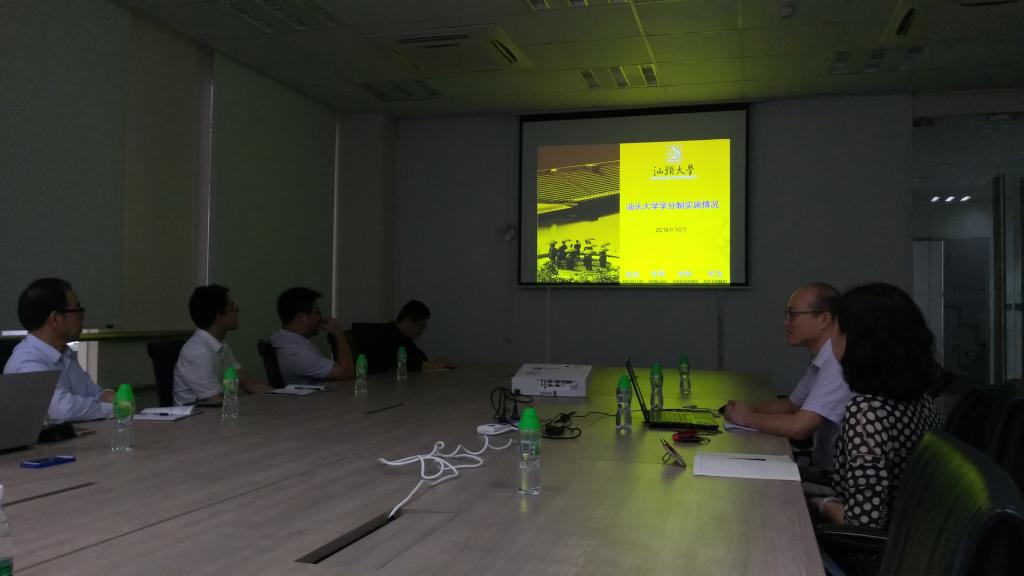 2016年10月28日,学院副院长郭银华率教务处处长源国伟、副处长金伟娇、人事处副处长彭强、评估办副主任胡小瑜、学生处副处长黄国富、财务处副主持余静秋、实验教学与网络技术管理中心副主任曾志区等人赴汕头大学进行学分制改革专题调研学习。汕头大学教务处余黛老师主持交流会,并对我院一行来访表示热烈欢迎。