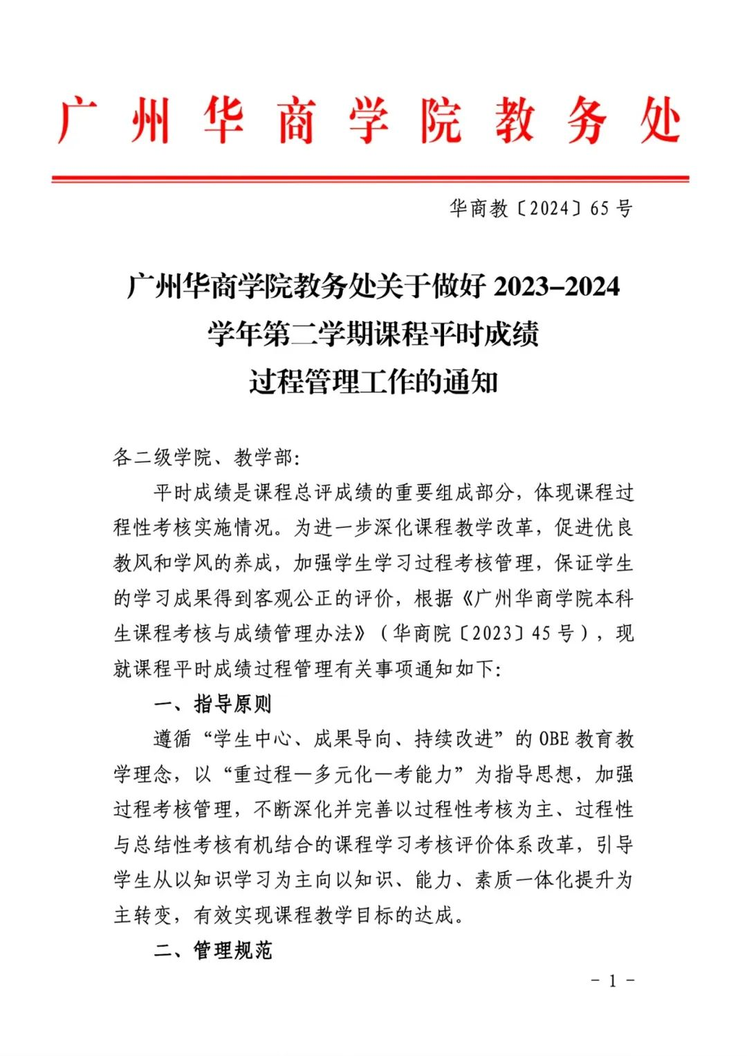 关于做好2023-2024学年第二学期课程平时成绩过程管理工作的通知