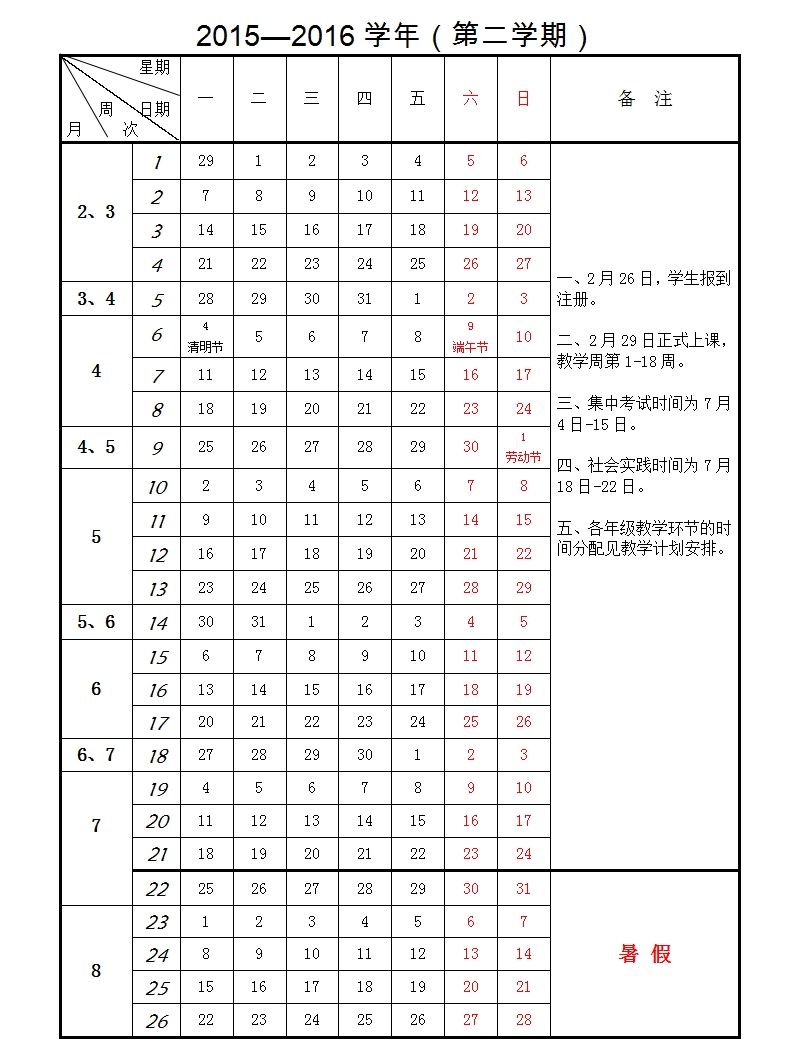学校校历
